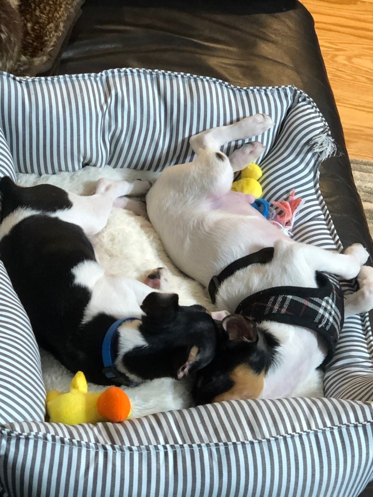 We are proud parents of two new toy fox terriers, Murphy and Maxwell. They are brothers born on December 11, 2019. Murphy came to live with us March 14, 2020. He was 13 weeks old. We picked him up at the American Airlines Cargo location at DFW airport. He flew in from Springfield Missouri. A little scary since we are dealing with the Coronavirus pandemic. Everyone is steering clear of airports. We didn’t actually have to go inside the airport though. The minute we took him out of the crate, we feel in love with him. super cute and very loving. The tiny teeth hurt though. Thank God that I already had chew toys ready for him. His name was Scrappy, but everyone was calling him Crappy so we changed that right away. Didn’t want to scar him for life.